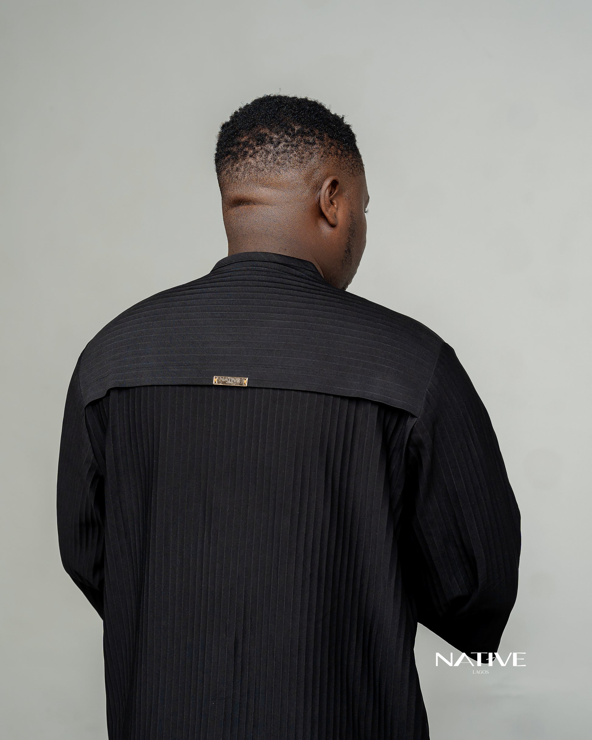 Crafted in a smooth, premium fabric, this outfit features a sleek minimalist design elevated by a striking red accent and gold chain detail on the chest pocket for a touch of luxury.